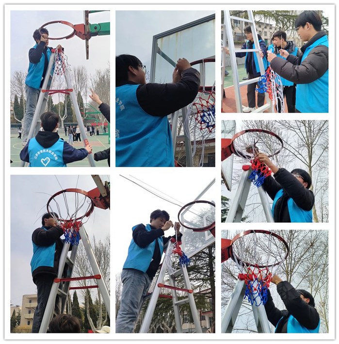 为贯彻落实习近平总书记重要指示精神,我院组织志愿者于3月5日开展“我为球场装篮网”学雷锋志愿服务活动,改善同学们运动场所条件。