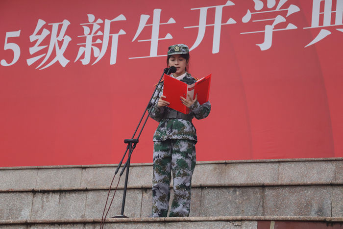 2025级电梯工程技术1班的常家燕同学作为新生代表发言,向即将为我们付出辛勤汗水的各位教官和老师们表示最崇高的敬意和衷心的感谢,并且表态将以饱满的热情、昂扬的斗志,投身到这场锻炼中,努力用汗水浇灌成长,用拼搏书写青春,交出大学生活第一课的满意答卷!