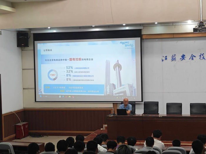 金秋九月,电梯产业学院订单班宣讲活动在贾汪校区B2-106室举行。上海三菱电梯有限公司江苏省培训中心秦勇泉教务长对电梯工程技术专业的学生开展订单班宣讲活动。宣讲中重点讲述订单班的报名条件,人才培养的方法和流程。秦教务欢迎同学们加入国有控股企业-上海三菱电梯有限公司,为企业的发展贡献自己的力量。