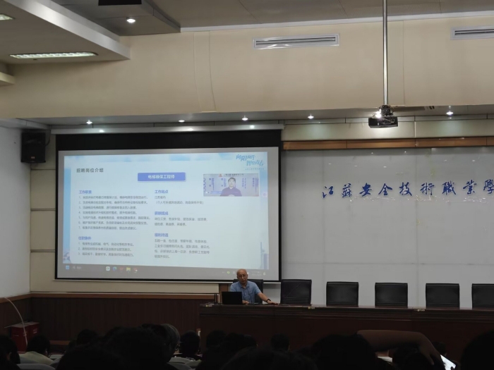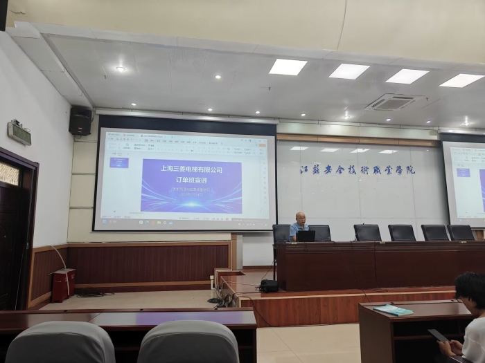 为加强校企合作,提升学生职业素养和实践能力,9月24日,上海三菱电梯有限公司江苏省培训中心秦勇泉教务长对电梯工程技术专业的学生开展订单班宣讲活动。