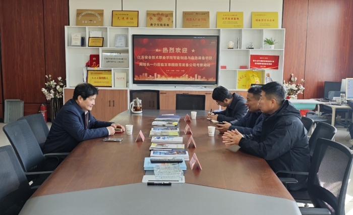 为深化校企合作、推动产教融合,精准对接企业人才需求与学生职业发展。11月18日,智能制造与应急装备学院副院长(主持工作)周中艳、副院长崔广军、继续教育学院副院长张广辰、专业课教师宋陆昊团队一行4人,前往山东百草园教育装备股份有限公司进行深入调研,并就校企合作与社会培训事宜进行洽谈交流。