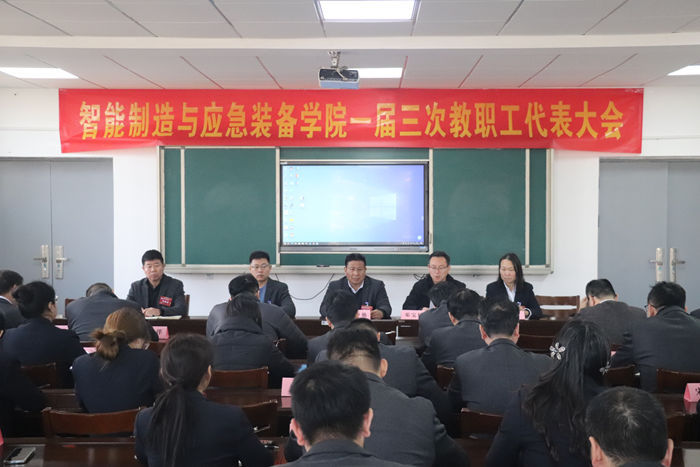 12月24日下午,智能制造与应急装备学院一届三次教职工代表大会在B1-301会议室召开。会议由我院党总支副书记邓宝仿主持。