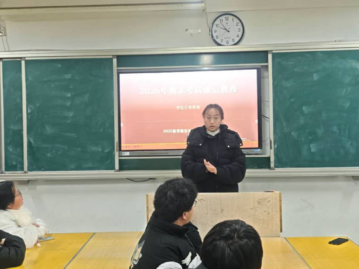 各班级班课上,辅导员围绕诚信考试的重要性展开讲解,通过列举考试违规案例,强调考试作弊的严重后果,引导学生树立正确的价值观,自觉遵守考试纪律,诚信应考。同时,老师们还分享了有效的备考方法和策略,鼓励同学们合理规划复习时间,制定科学的复习计划,以积极的心态迎接考试。