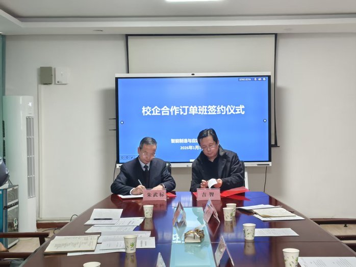 与会双方代表就工学交替、顶岗实习与订单班培养模式的有机融合、企业导师与校内教师的双向互动等议题进行了探讨。在充分交流并达成多项共识的基础上,会议举行了签约仪式。吉智与朱武标分别代表校企双方,共同签署了订单班合作协议。
