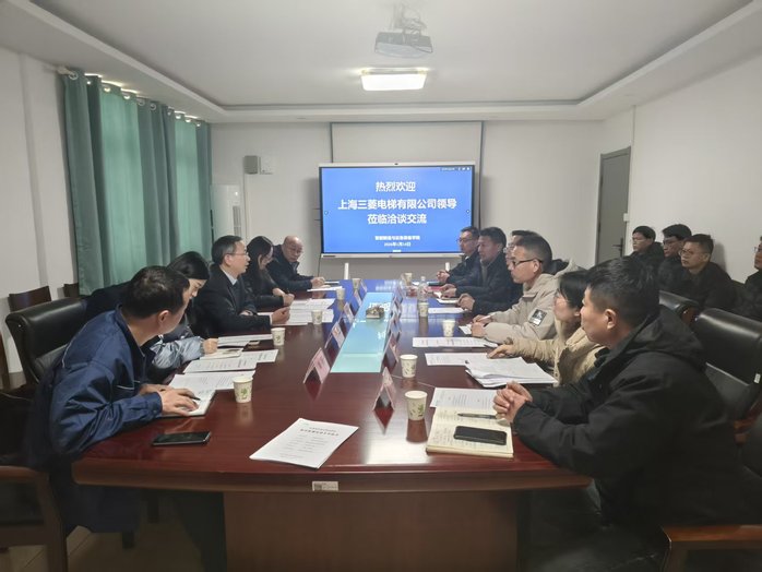 为深化产教融合、校企合作,精准对接电梯行业高素质技术技能人才需求,推动人才培养与产业需求紧密衔接,1月14日,上海三菱电梯有限公司教育培训部部长朱武标等一行来我校深入洽谈并签约订单班合作协议。上海三菱电梯有限公司培训主管奚凌云、江苏分公司综管部经理张愉、华东一区培训分中心教务长秦勇泉及教务刘凯陪同来访。副校长吉智出席签约仪式,教务处、产教融合办公室、智能制造与应急装备学院相关负责同志参加活动。