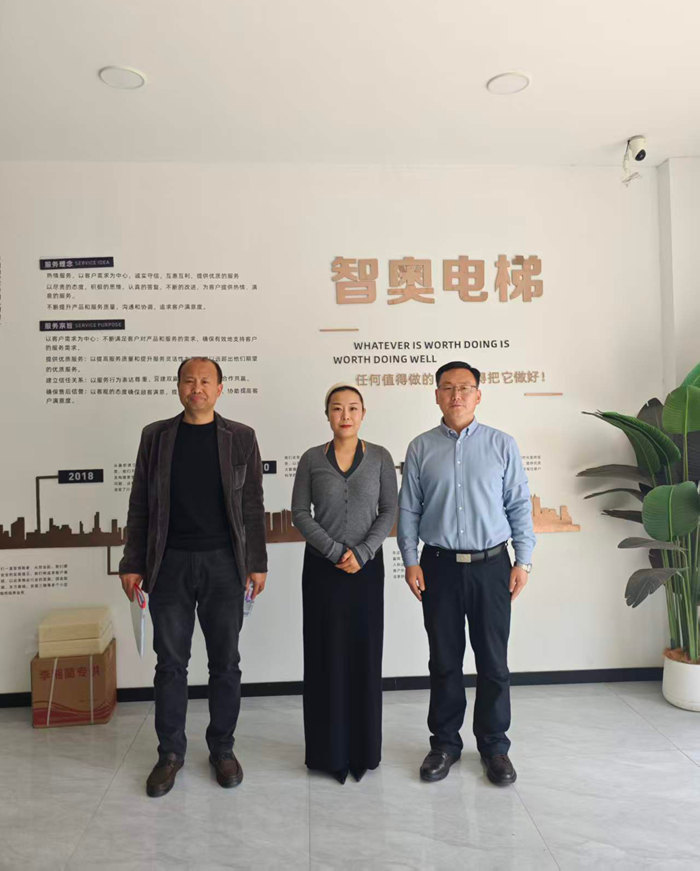 徐州智奥电梯工程有限公司王经理对邓书记一行的到来表示热烈欢迎,并介绍企业的发展历史、运营模式、当前现状,分析当前行业发展趋势和对实习生毕业生用人的需求。