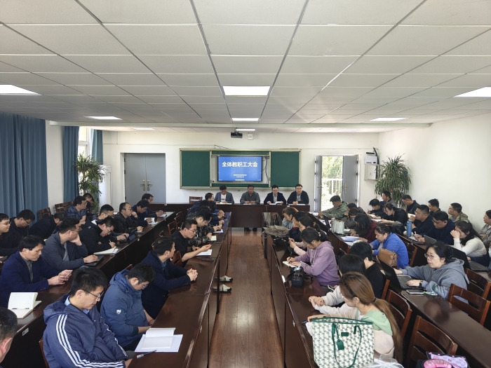 4月24日,我院在B1-301召开全体教职工大会。我院院长周中艳、党总支副书记(主持工作)吕猛、党总支副书记邓宝仿、副院长段焜出席会议。